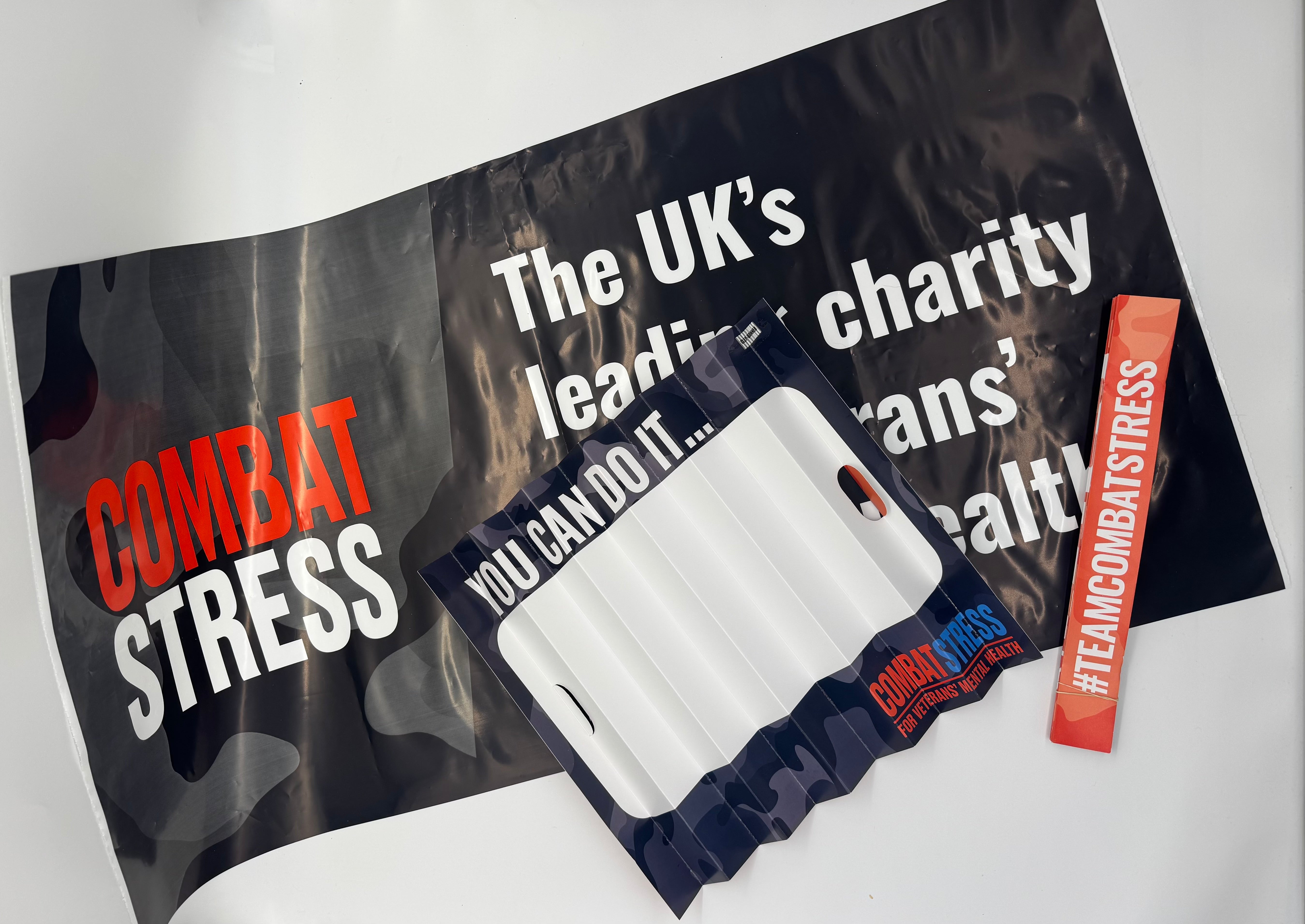The Combat Stress cheer pack is a must-have for every Team Combat Stress supporter! With a disposable banner and clap banners, you can cheer on your friends and family at any event or fundraiser and make sure they’ll hear you for miles around. The Cheer Pack contains: 2 clap banners and 1 disposable banner. It costs us approximately £3.50 (plus postage) for each cheer pack. A donation of £7 per pack would be amazing and mean that we can continue to give veterans life-changing treatment.